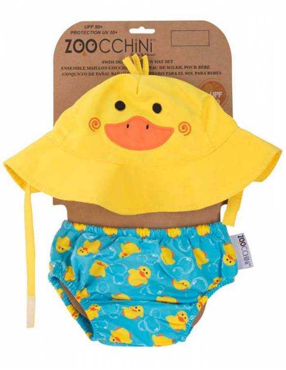 ✔ Divertido conjunto de bañador pañal para bebé y gorro con protección solar UPF50 a juego con estampado de pato.