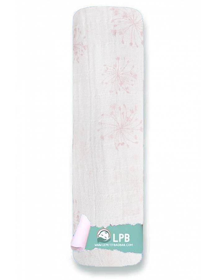 Muselina individual de delicado y agradable algodón con estampado de diente de león perteneciente al pack Ensueño de amor. Desde arrullo o mantita para la lactancia, a parasol para el cochecito, les darás mil usos a lo largo de todo el día. ¡De lo más práctico que encontrarás!.